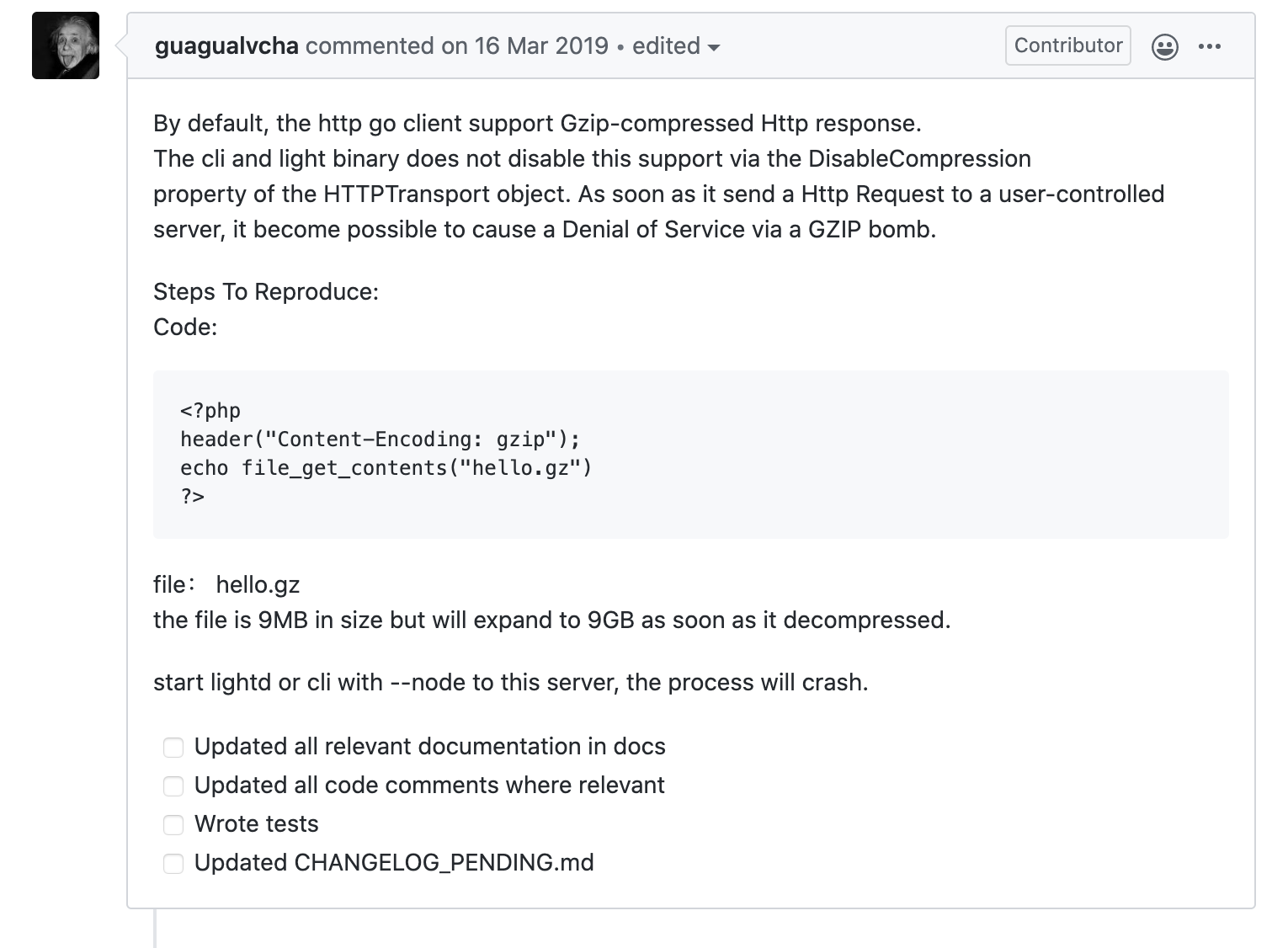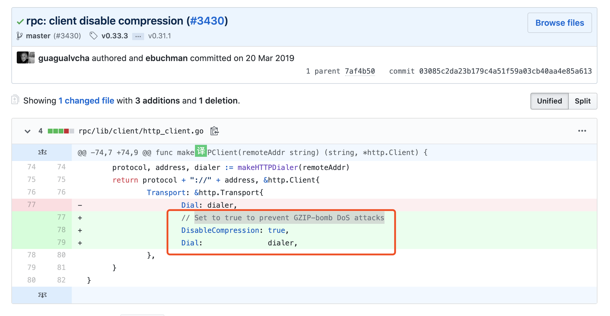 Go默认的http客户端处理该gzip响应时,10MB数据将解压扩至10GB,从而导致客户端OOMcrash
