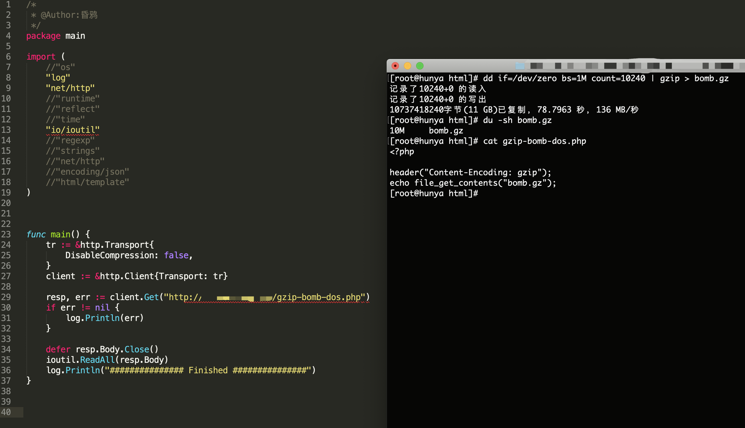 在云服务器上制作一个10M的10G gzip压缩包,并用PHP实现gzip-bomb DoS响应
