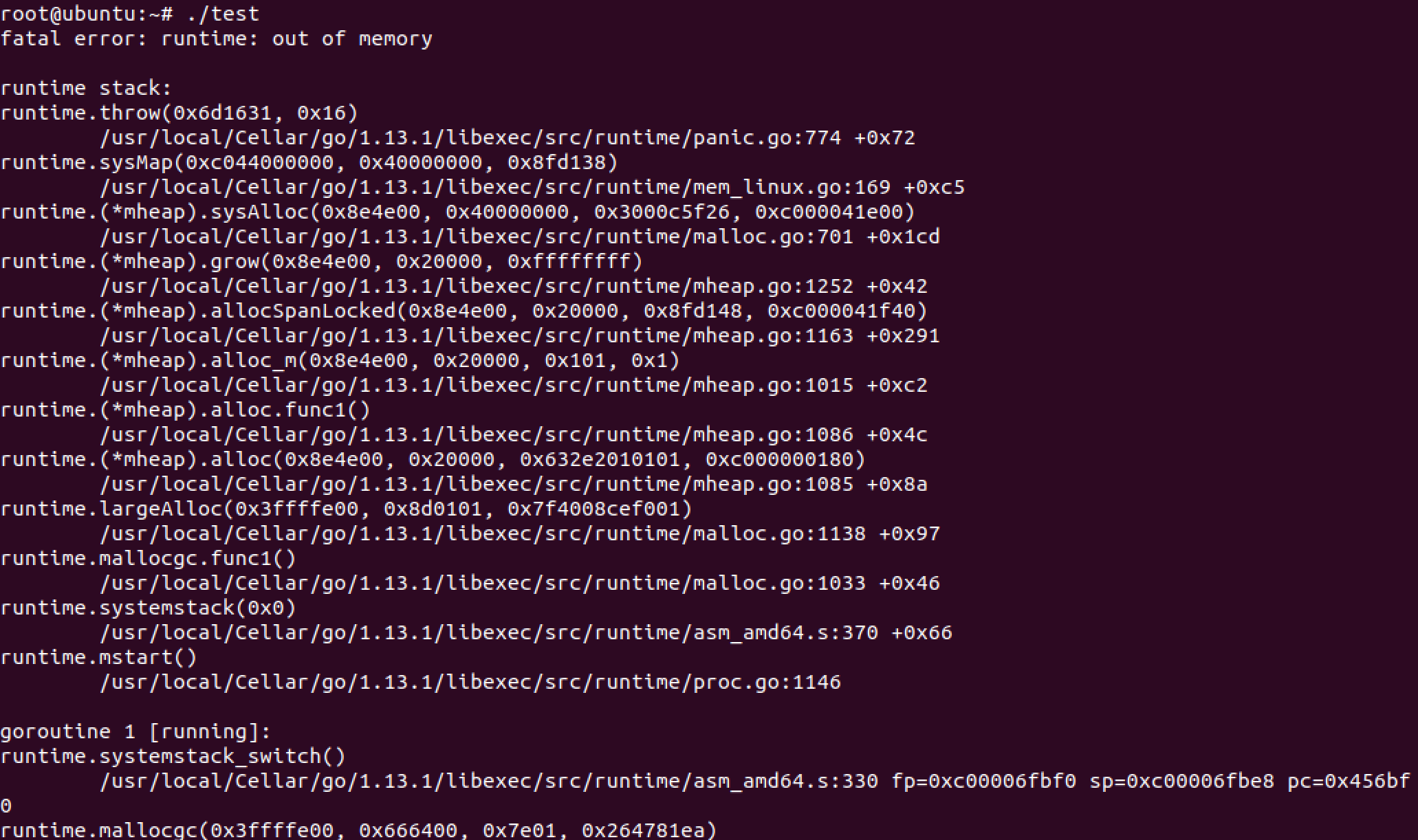编译后在2g内存的Ubuntu虚拟机中执行,程序crash