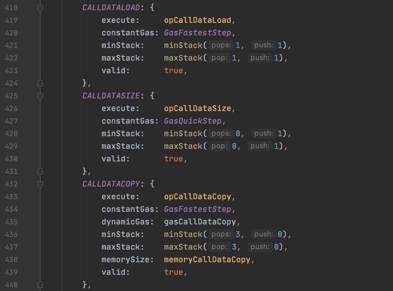 jump_table.go中的代码同样只是起到解析的功能,提供了指令的查找,定义了每个指令具体的执行函数