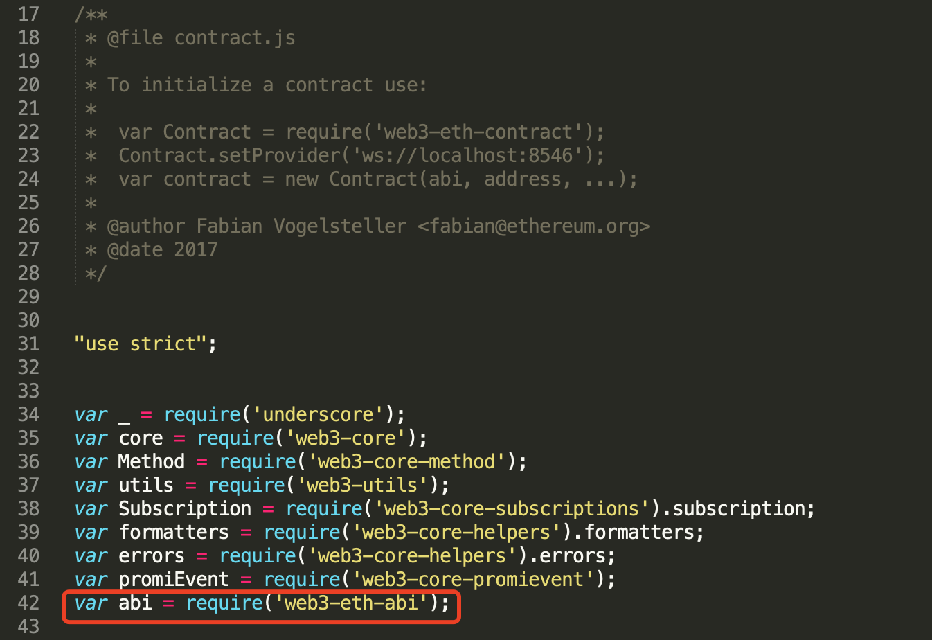 而abi是在文件头部导入的web3-eth-abi包