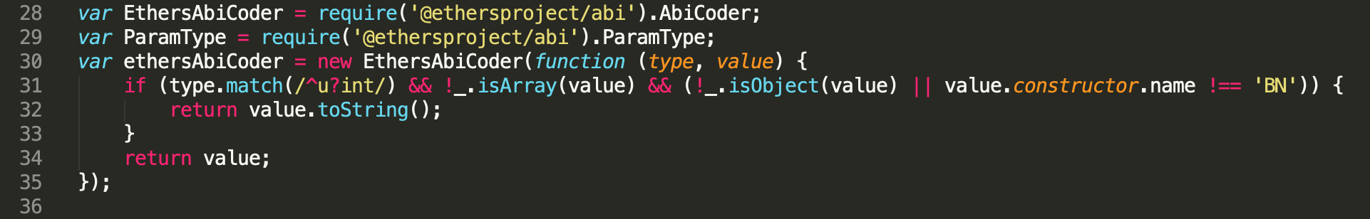 在文件头部可以看到ethersAbiCoder是@ethersproject/abi包中的AbiCoder类的实例