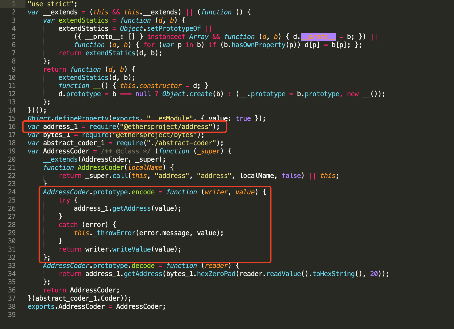 AddressCoder.encode函数中直接尝试调用address_1.getAddress(),而address_1是导入的@ethersproject/address