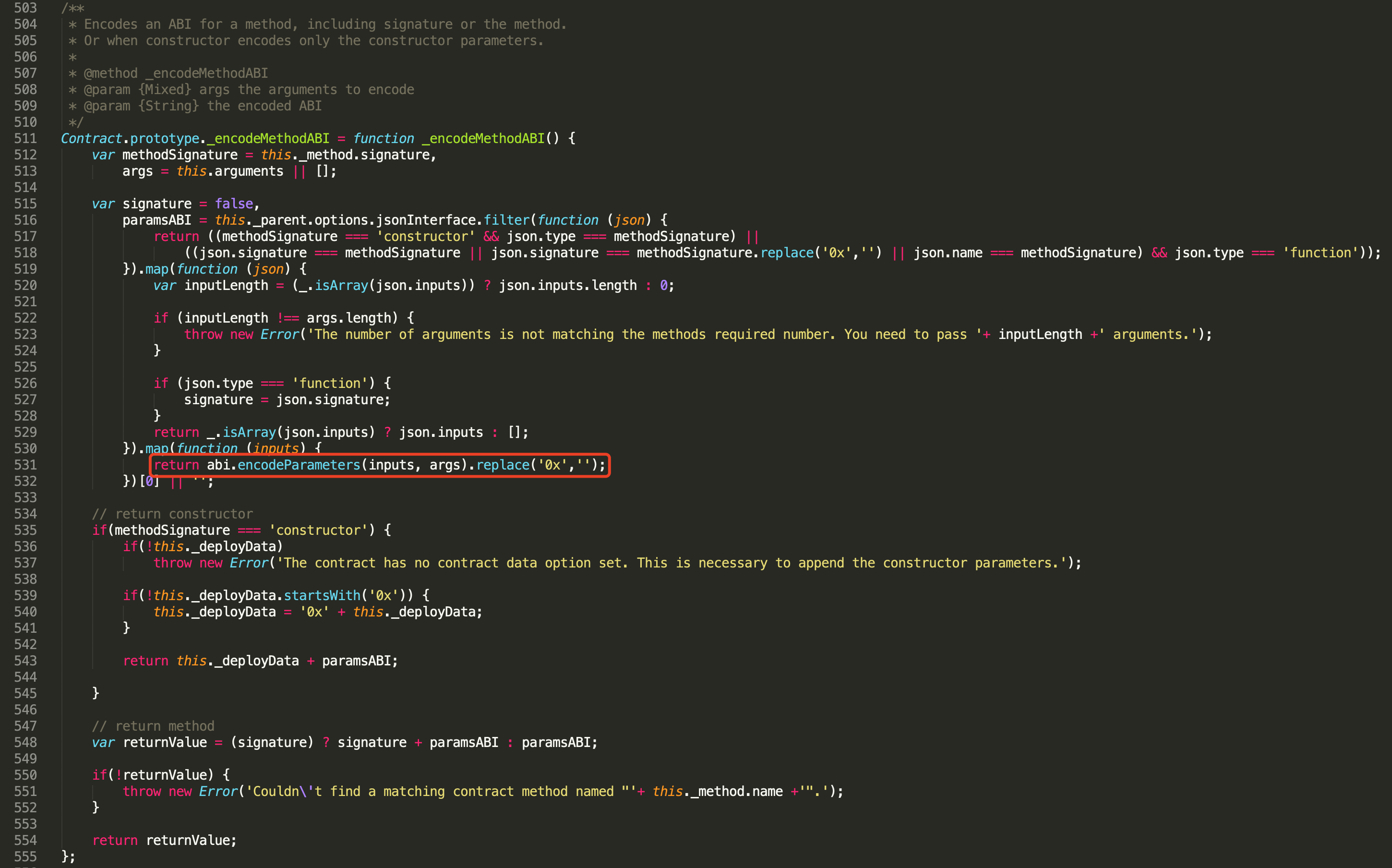 _encodeMethodABI会调用abi.encodeParameters方法获取参数编码后的数据