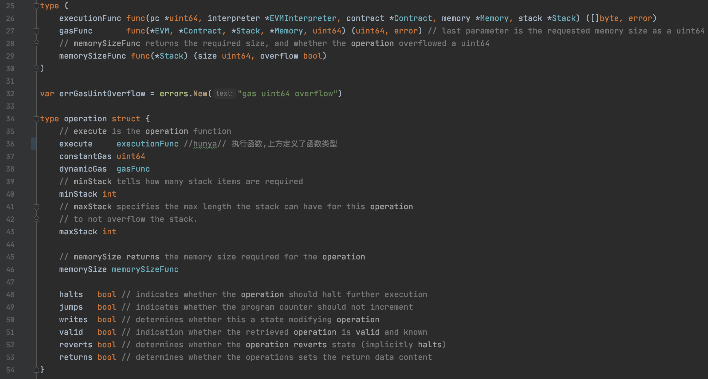 operation的定义位于jump_table.go中