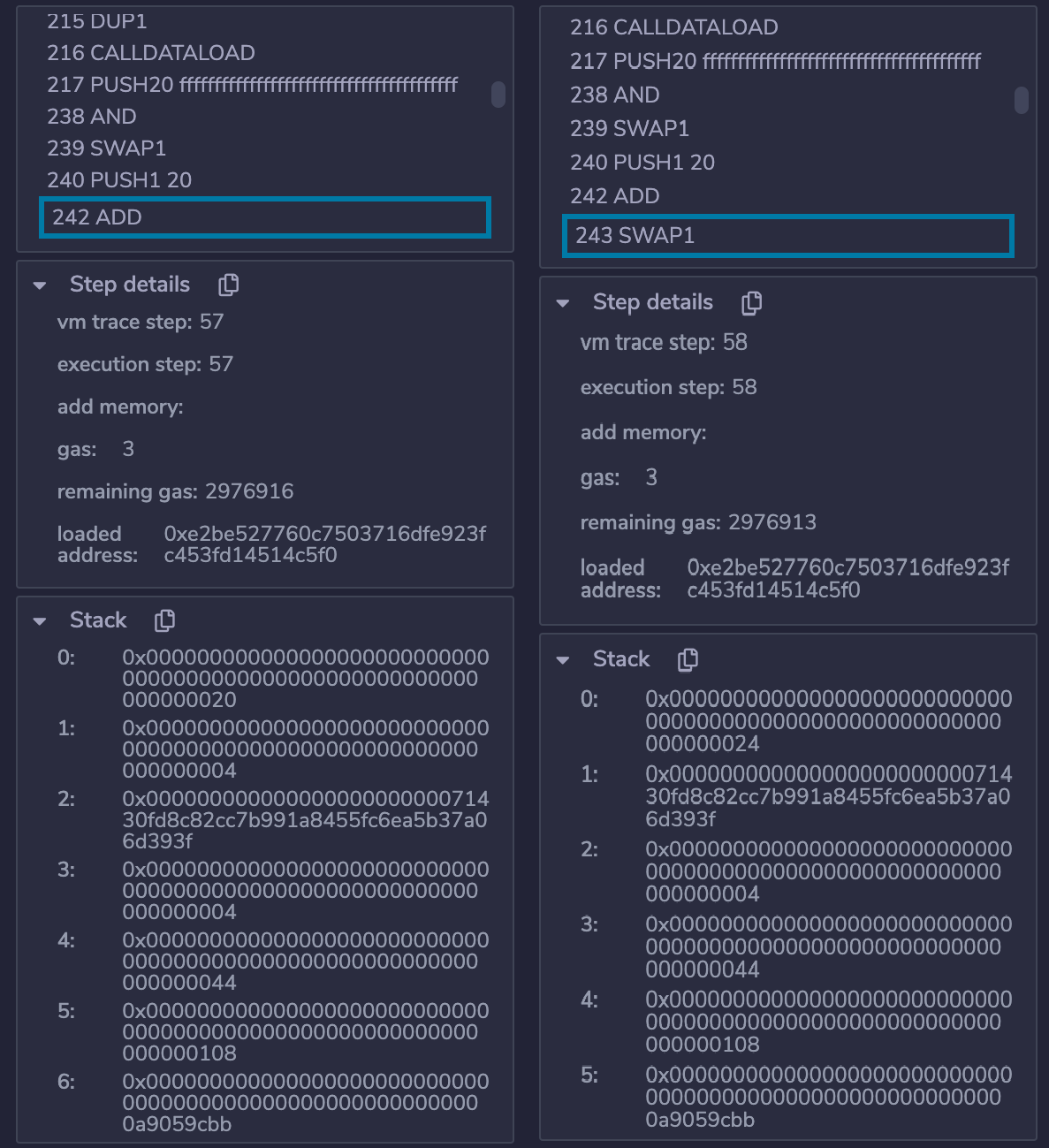 ... //循环解析执行合约的字节码